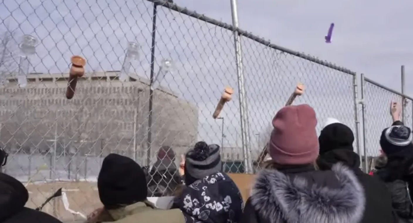 Special thanks to the Smitten Kitten here in Minneapolis. They have done so much work collecting supplies for people in need, as well as coming up with bulk supplies of dildos, where I suspect a good number of the flying members may have came from.. Sort of the Army Surplus of dildos.