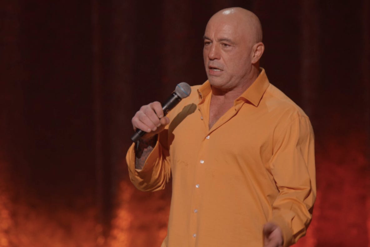 Rogan has also made something of a name for himself as one of the self-appointed leaders of anti-wokism, going so far as to open a comedy club in Austin called “The Comedy Mothership,” whose mission is to be a censorship-free safe space for comedians too cowed by the woke mob to perform, I guess, the kind of jokes that Rogan told above.