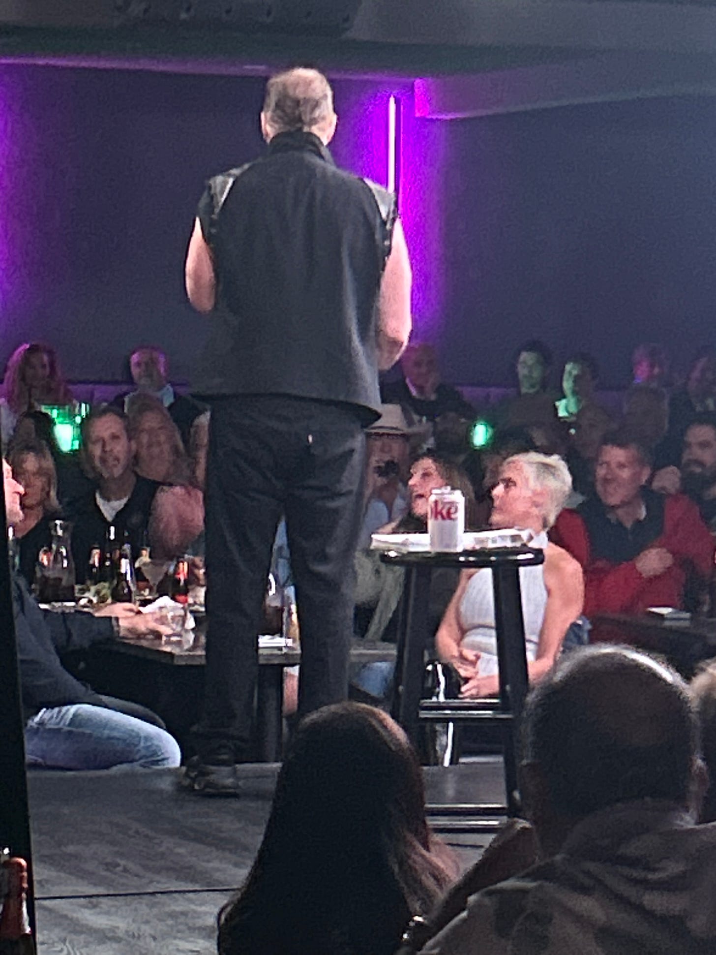 Friday night, I arrived at the club in time to see the last fifteen minutes of Andrew “Dice” Clay, 66, perform his set. I’d never met the man nor had I ever seen his act live. If I had an opinion of him at all, it was that he deserves credit for creating a well-known character in the same way Paul Rubens deserves credit for creating Pee-Wee Herman. I’ve never thought about this before, but in some ways, the two characters are mirror images of each other, cartoonish images of stunted American masculinity. In fact, when you really boil it down, the most significant difference between the two it’s that Pee-Wee Herman was funny.