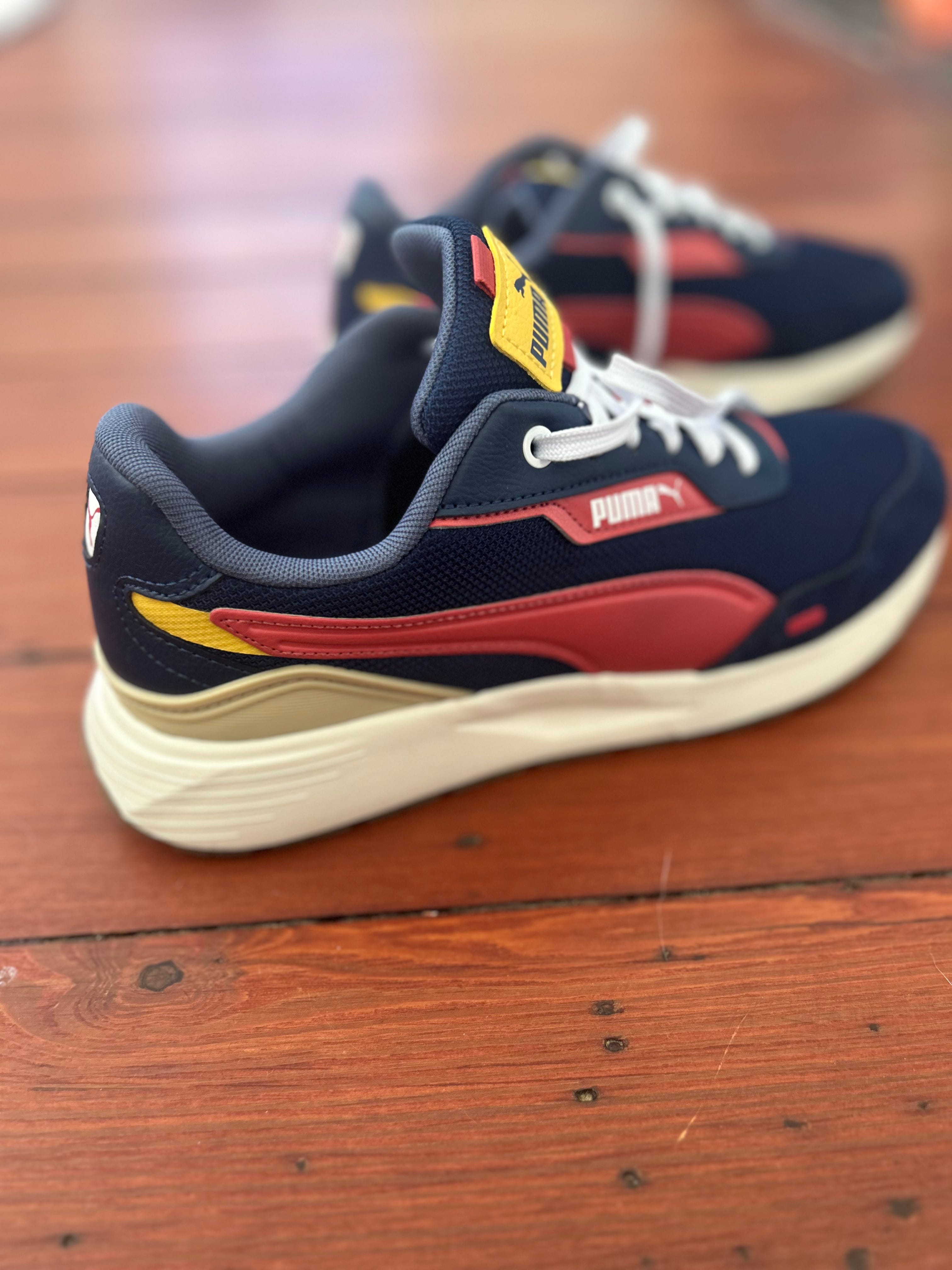 These Pumas aren’t going to make me run faster, jump higher, or set a personal best in the hammer throw. What they are going to do is keep my feet warm and comfortable at a reasonable price. You want to know how much I paid for these sneakers? Like, sixty bucks. That’s a good price for a pair of sneakers with this much swerve.